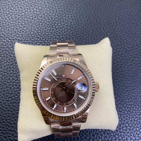 Fábrica de alta calidad 9001 Movimiento Zona horaria dual Pantalla de fase lunar Reloj para hombre Diámetro 42mm Oro rosa