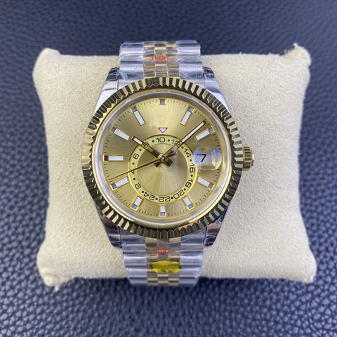 Movimiento de fábrica de alta calidad Zona horaria dual Pantalla de fase lunar Reloj para hombre Diámetro 42mm Caja dorada