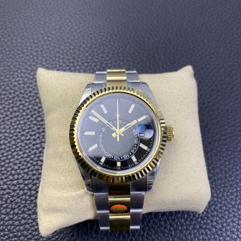 Fábrica de alta calidad 9001 Movimiento Zona horaria dual Pantalla de fase lunar Reloj para hombre Diámetro 42mm Caja dorada