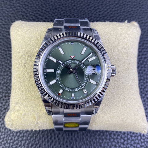 Movimiento personalizado de fábrica de alta calidad, pantalla de fase lunar de doble zona horaria, reloj para hombre, diámetro de 42mm, fideos verdes