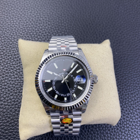Fábrica de alta calidad 9001 Movimiento Zona horaria dual Pantalla de fase lunar Reloj para hombre Diámetro 42mm Superficie negra